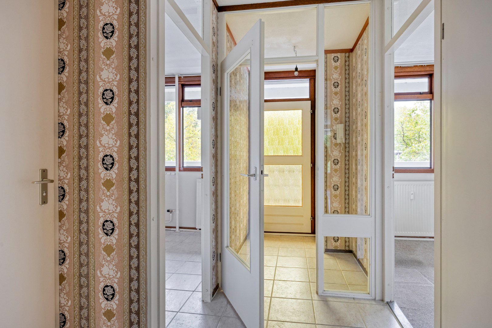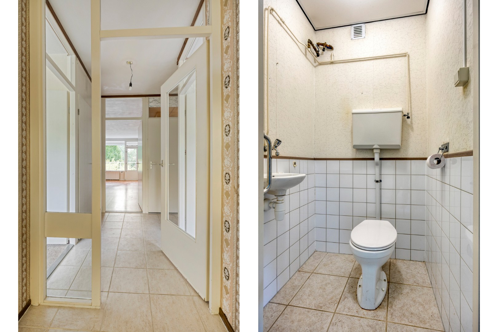 Entree met meterkast, hal met inpandige berging en toegang tot de vertrekken. Toiletruimte is half betegeld en voorzien van een duoblok en fonteintje.