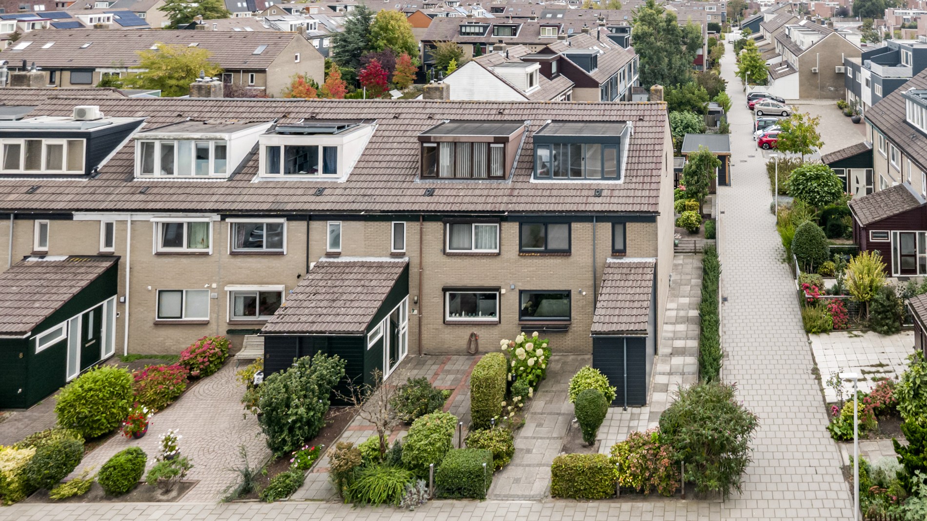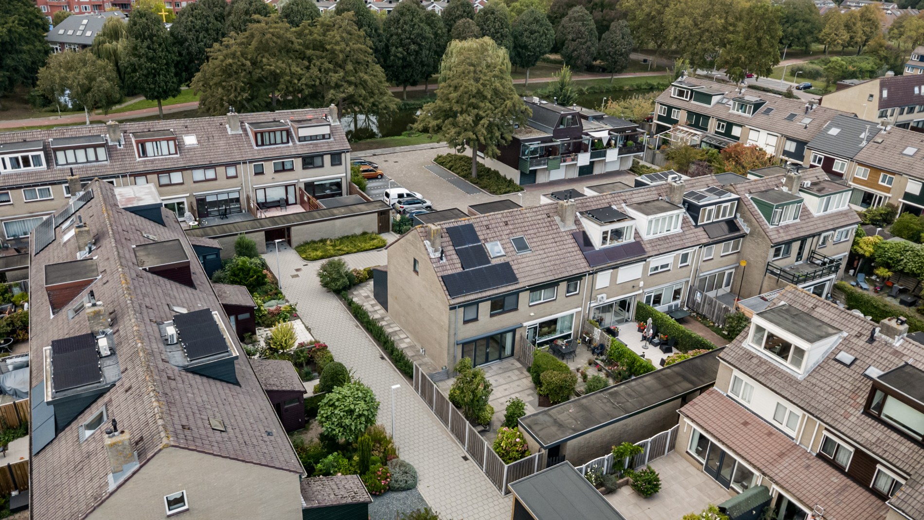 * Hoekwoning met voor-, zij- en achtertuin
