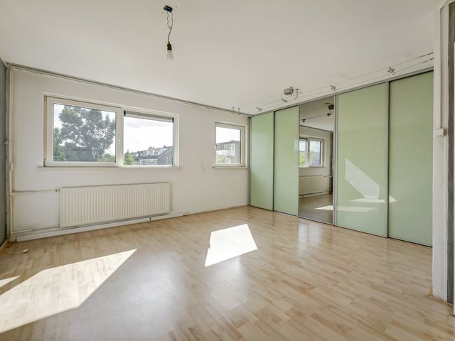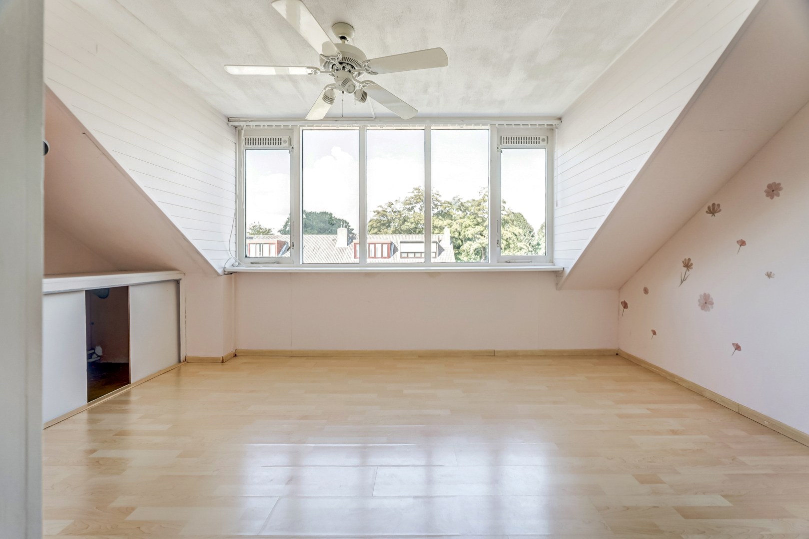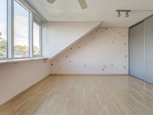 De derde slaapkamer is voorzien van een dakkapel en vaste kasten en biedt veel comfort en ruimte.