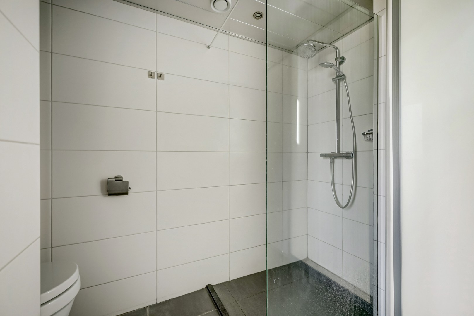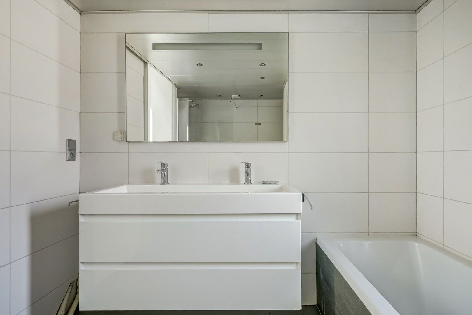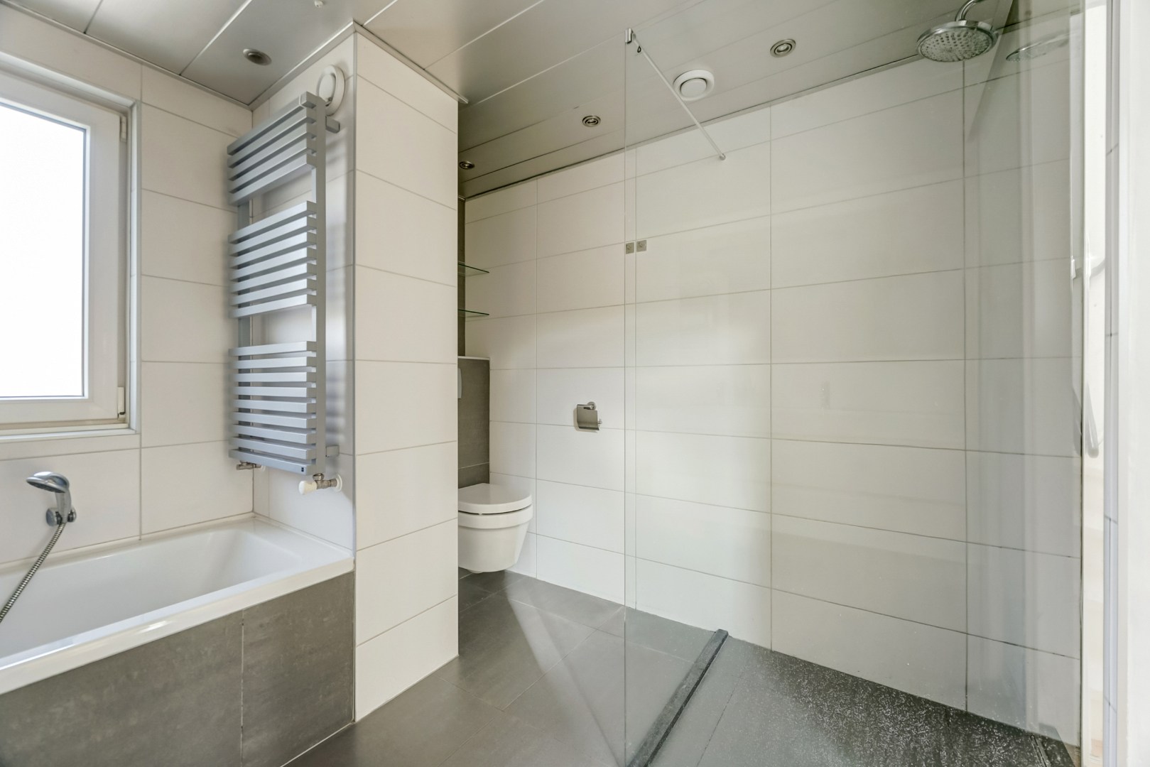 De badkamer is smaakvol en ruim uitgevoerd, voorzien van een inloopdouche, een tweede wandcloset, een ligbad, een wastafelmeubel en zelfs een geïntegreerde radio-installatie.