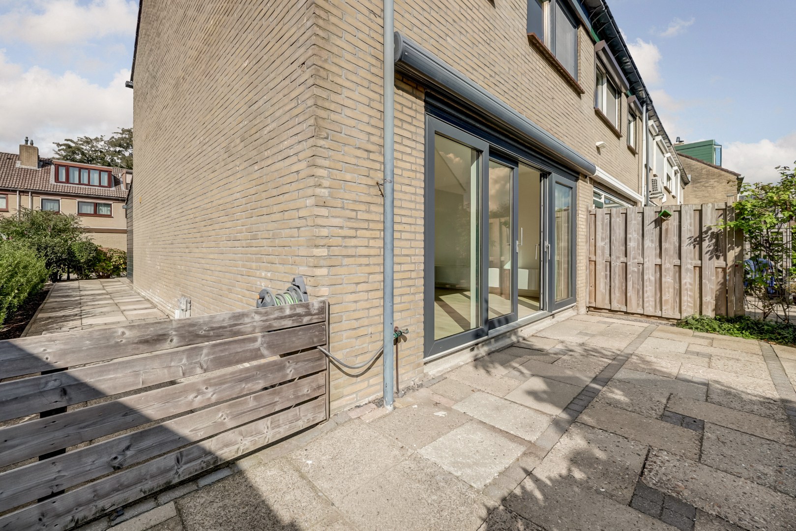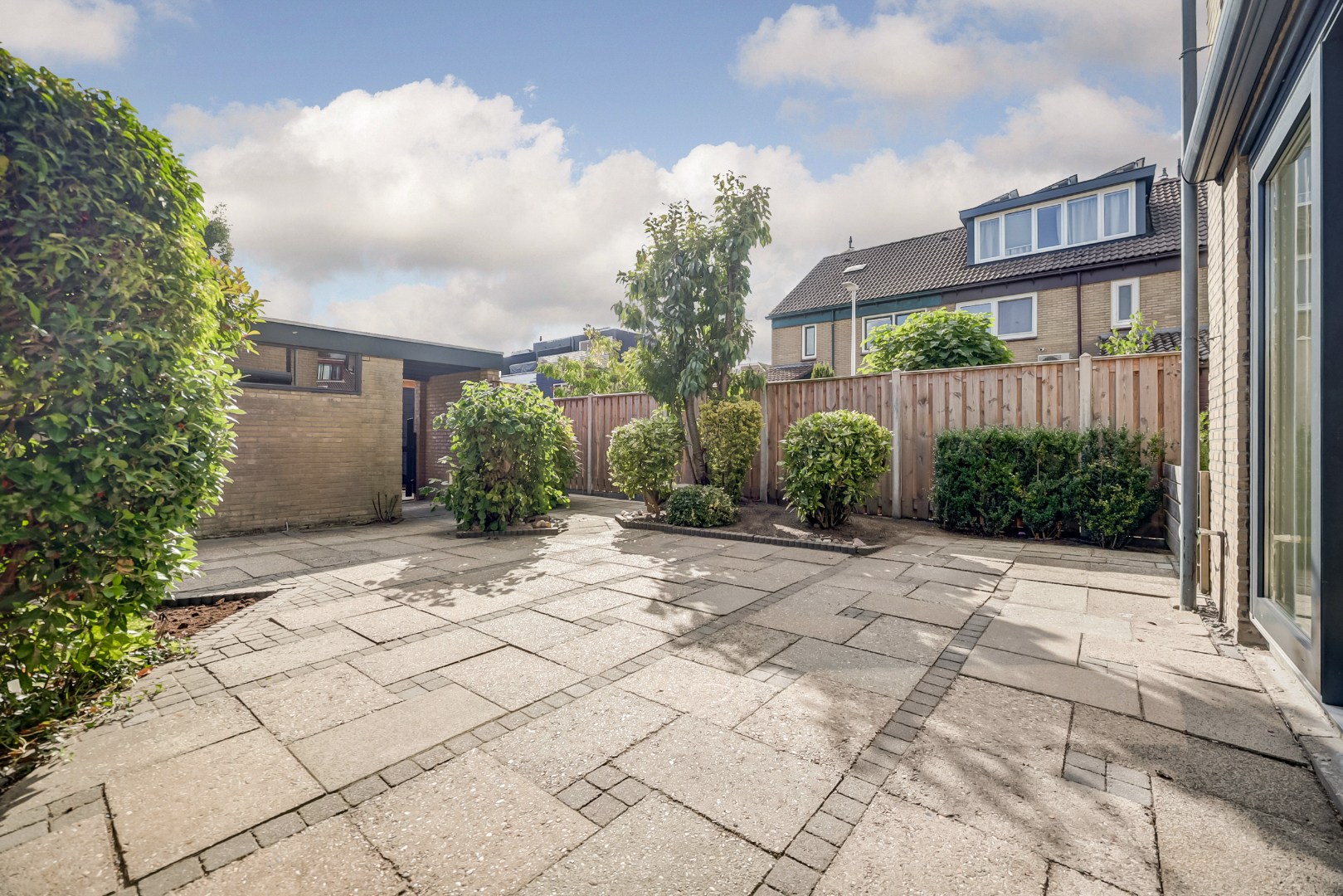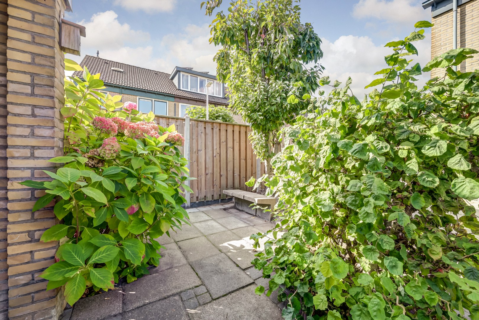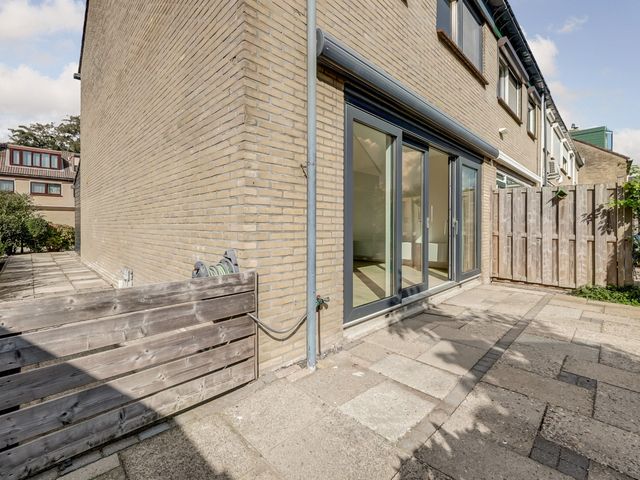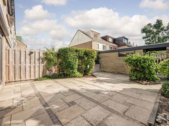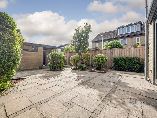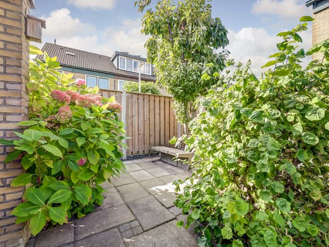 De zonnige en onderhoudsvriendelijke achtertuin op het zuidoosten biedt volop ruimte om te genieten van het buitenleven. Dankzij de ligging op een hoek is er extra tuin aan de zijkant van de woning, wat zorgt voor een ruimtelijk gevoel. Achterin de tuin bevindt zich een vrijstaande berging en een achterom.
