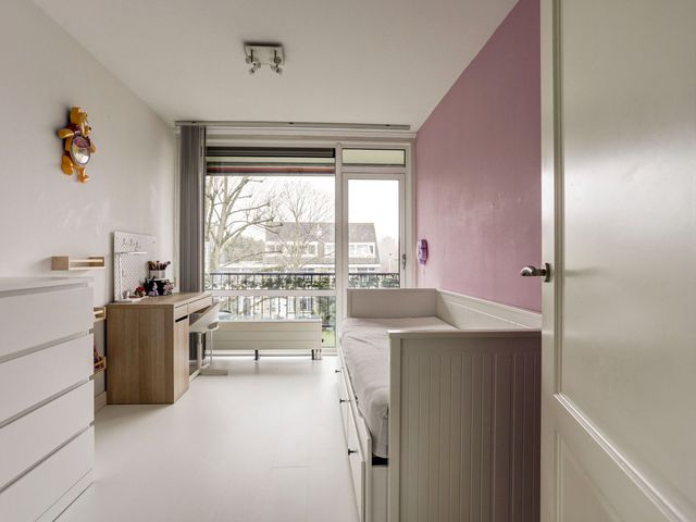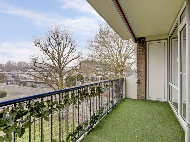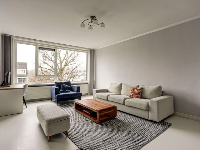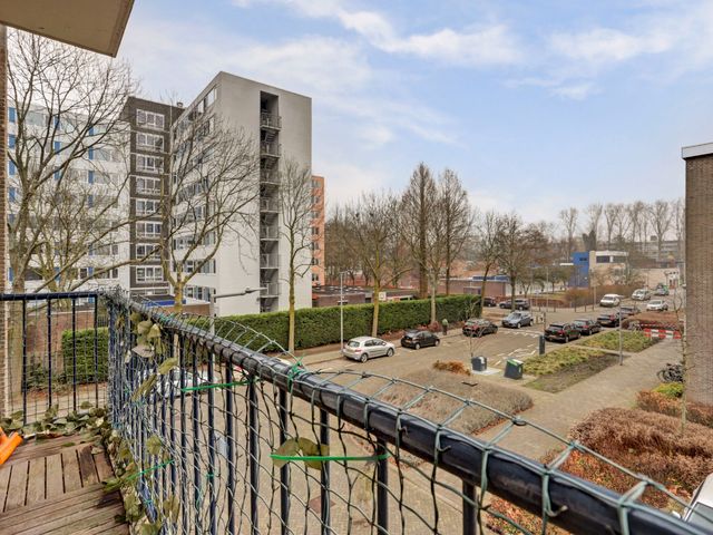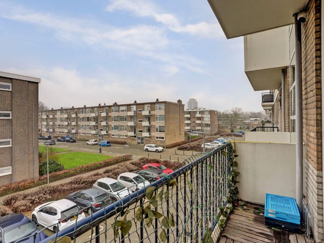Verzorgd en licht 3-kamer hoek-appartement met een royale living van ca. 34 m² en een zonnig balkon op het zuidwesten, waar u tot laat van de zon kunt genieten. De woning beschikt over een moderne keuken met inbouwapparatuur, een volledig betegelde badkamer, een separaat toilet en twee slaapkamers, waarvan één met kastenwand en één met toegang tot het balkon.