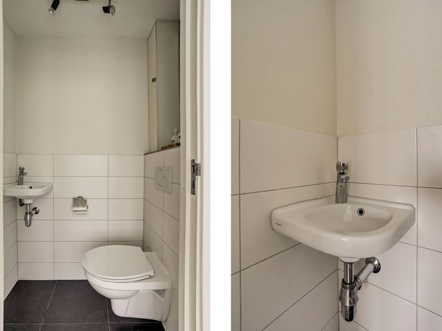 Entree, hal met meterkast, vaste kast en toilet (met wandcloset en fonteintje)Via de hal betreed u via de openslaande deuren de royale living van ca. 34 m².