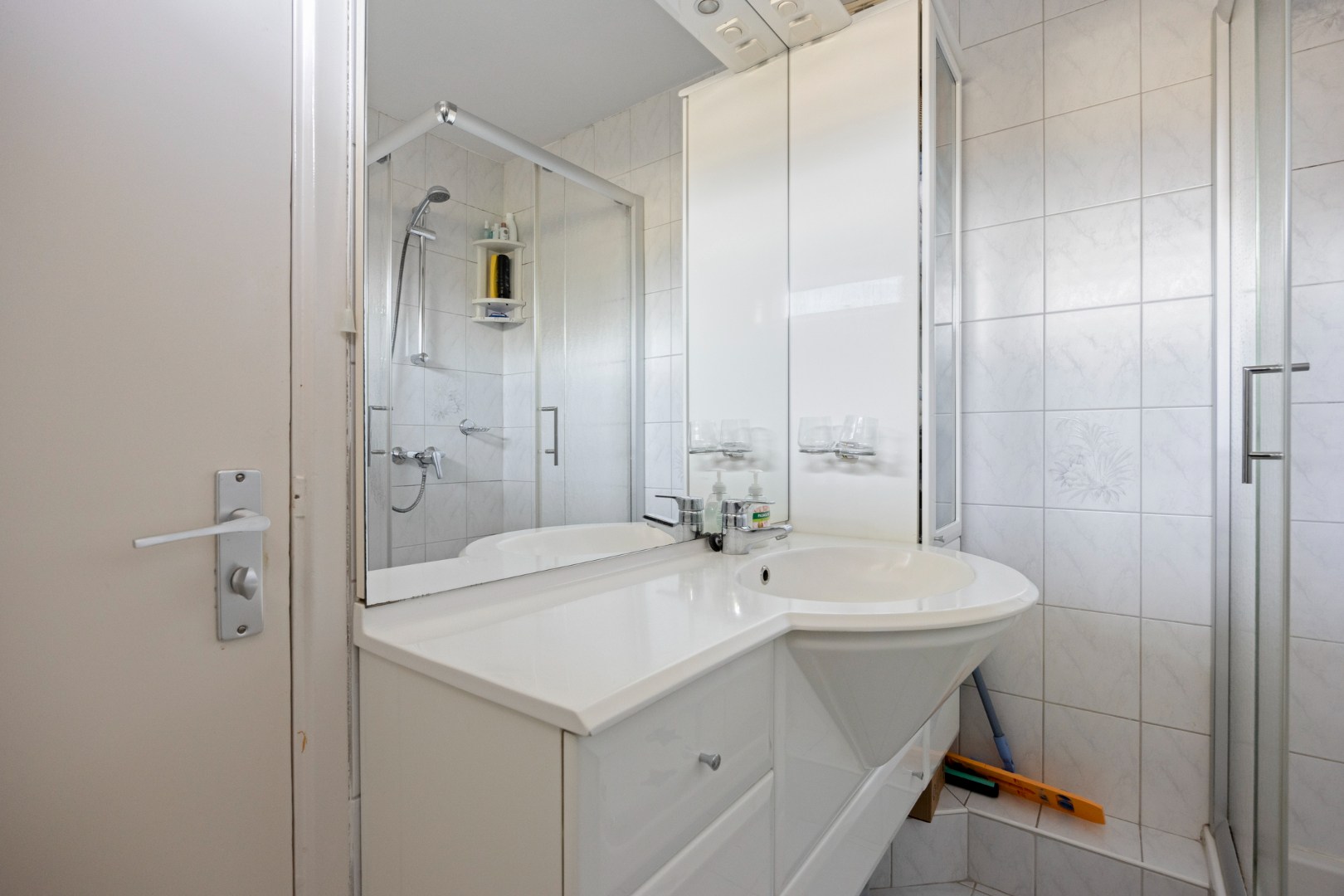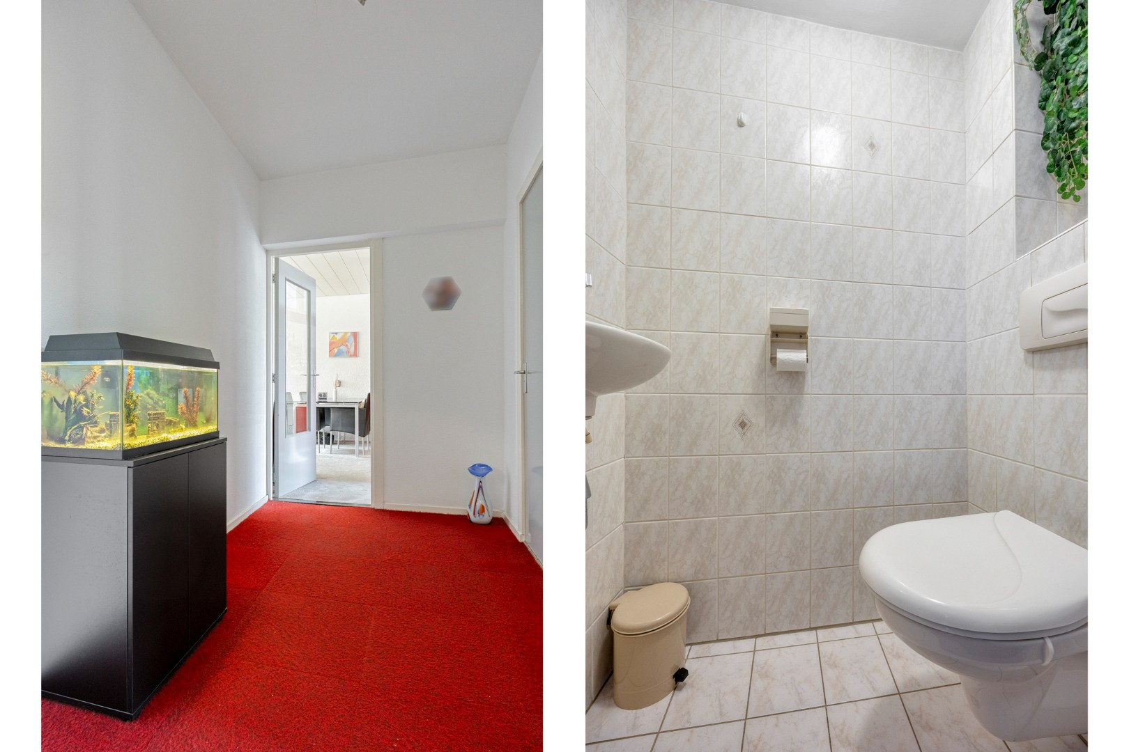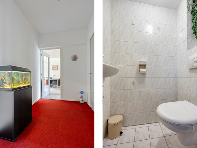 Via de entree komt u in de hal met meterkast en een handige opbergkast met de opstelplaats voor de Cv-combiketel. Ook vindt u hier het geheel betegelde toilet met wandcloset en fonteintje.