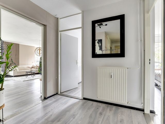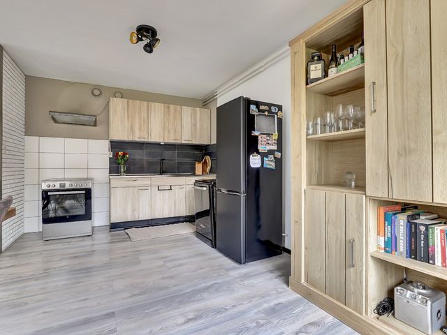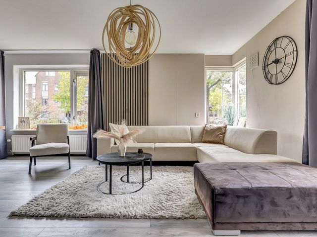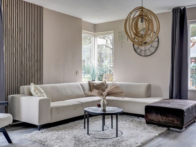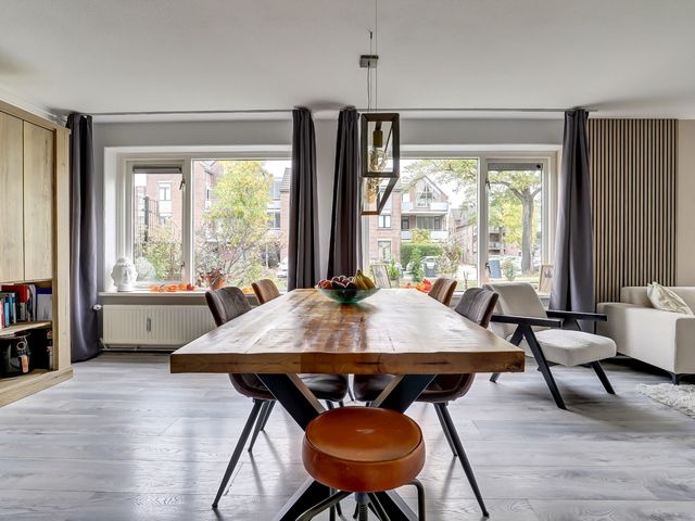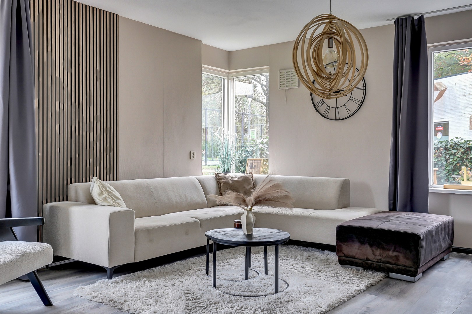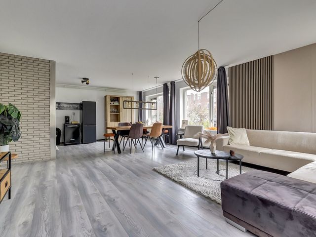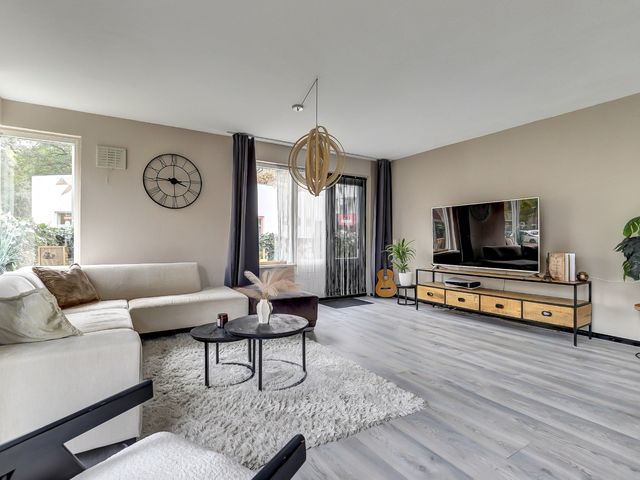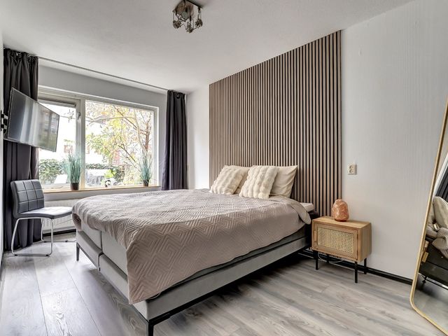 De royale living is een fijne plek om te ontspannen. Dankzij de grote ramen geniet u van volop daglicht, terwijl de strakke wanden, het moderne laminaat en de open indeling zorgen voor een eigentijdse uitstraling. Vanuit de woonkamer loopt u zo de fraaie tuin in, perfect voor een kop koffie in de ochtendzon of een gezellige zomeravond met vrienden. De tuin beschikt bovendien over een achterom, ideaal voor fietsen of tuinbenodigdheden.