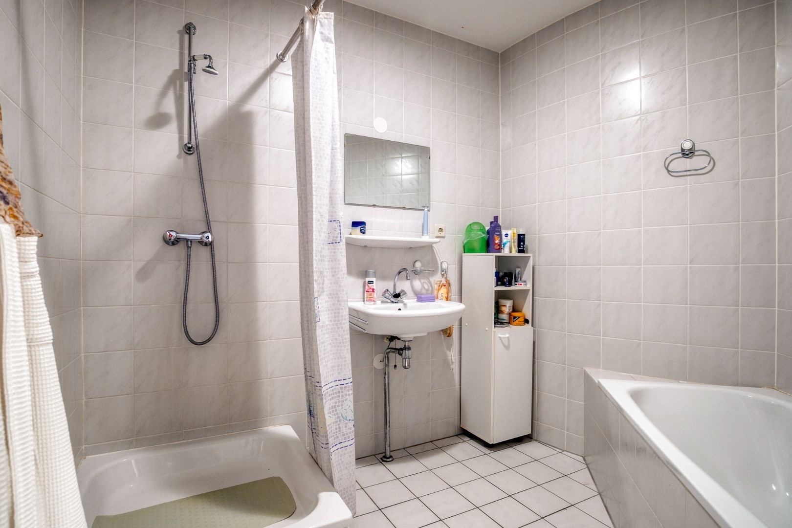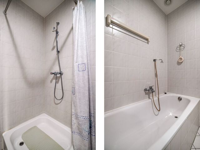 De woning beschikt over twee comfortabele slaapkamers, één aan de voorzijde en één aan de rustige achterzijde van de woning, perfect als hoofdslaapkamer, logeerkamer of thuiskantoor. De volledig betegelde badkamer is voorzien van een douchecabine, een ligbad én een wastafel, een fijne plek om de dag ontspannen te beginnen of af te sluiten.