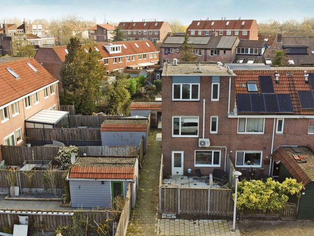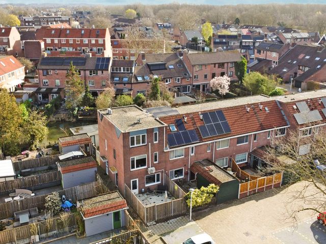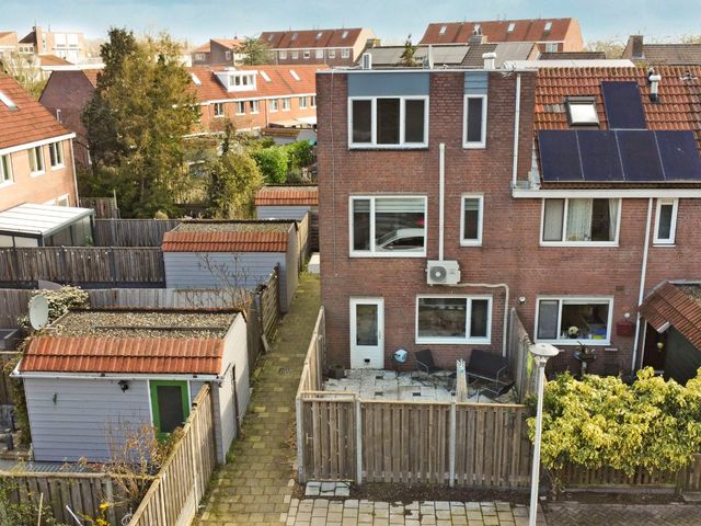 Lichte en goed ingedeelde 2-kamer hoekwoning met een zonnige tuin op het zuidwesten en achterom. De woning beschikt over een praktische woonkeuken, een verrassende lichte woonkamer met airconditioning en een vrij uitzicht. Op de bovenste verdieping bevinden zich een royale slaapkamer met airconditioning en een badkamer met ligbad en tweede toilet.