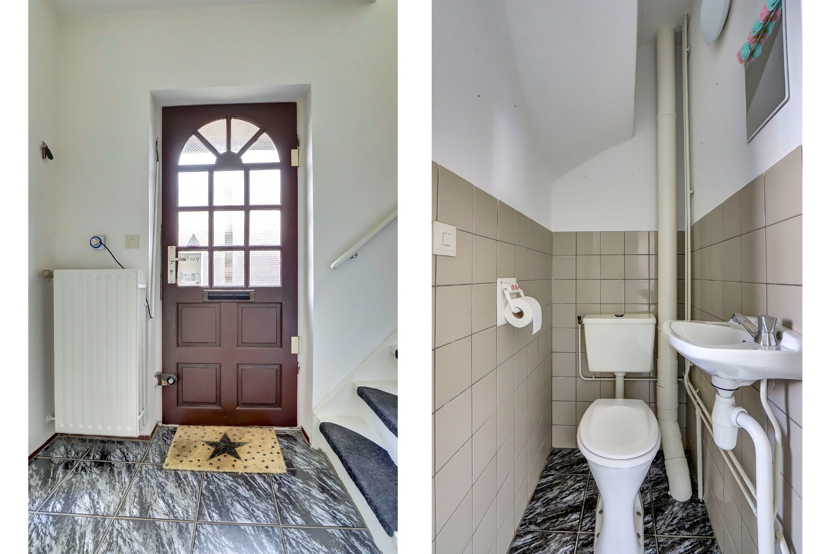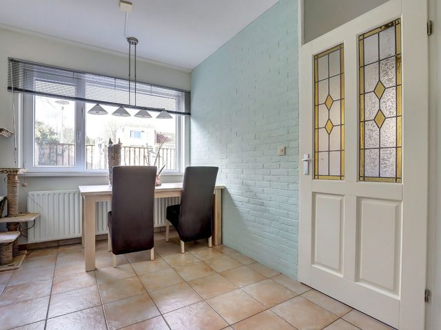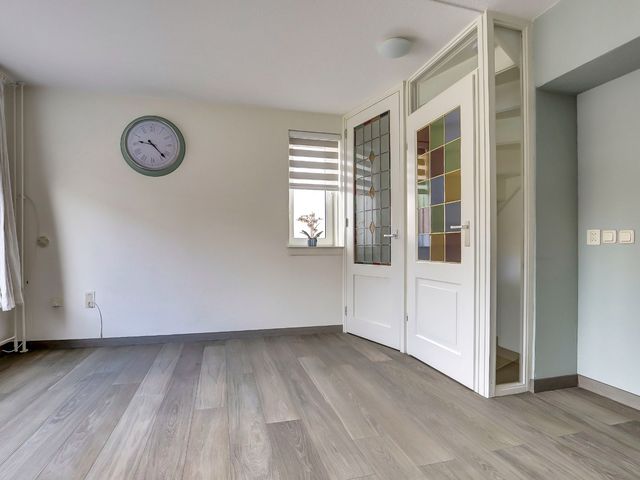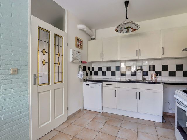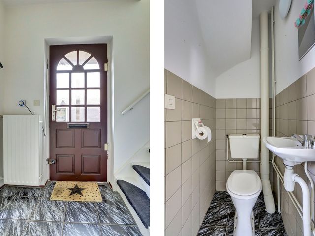 Entree, hal met meterkast, toiletruimte en trapopgang naar de verdiepingen. Vanuit de hal bereikt u tevens de praktische bijkeuken, die directe toegang biedt tot de zonnige achtertuin. De tuin is gunstig gelegen op het zuidwesten, beschikt over een achterom en is de ideale plek om te genieten van lange zomerdagen.