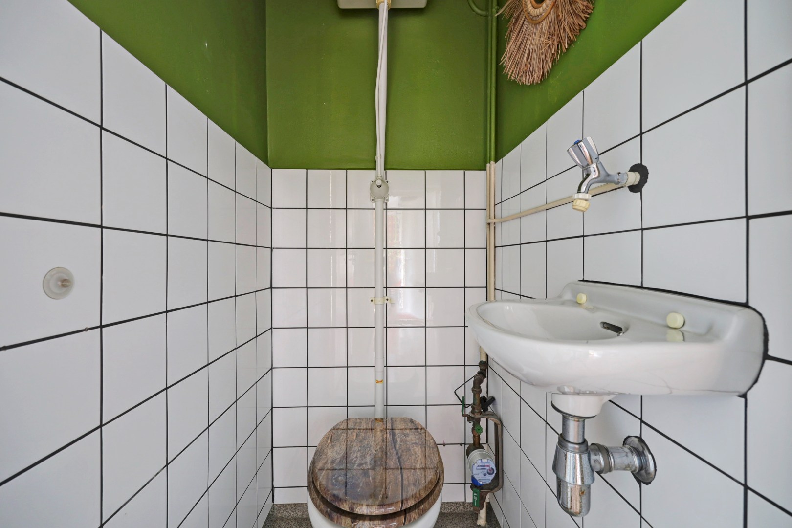 Entree, hal die toegang geeft tot alle vertrekken. Daarnaast is er een deels betegelde toiletruimte met fonteintje.
