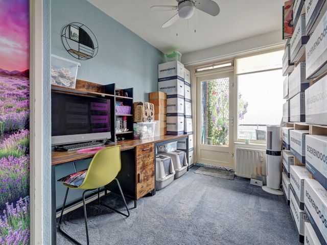 Het appartement beschikt over twee slaapkamers, de eerste slaapkamer bevindt zich aan de voorzijde met vaste kasten. De tweede slaapkamer, aan de achterzijde en geeft u directe toegang tot het balkon, tevens is in de vaste kast de opstelplaats van de boiler.