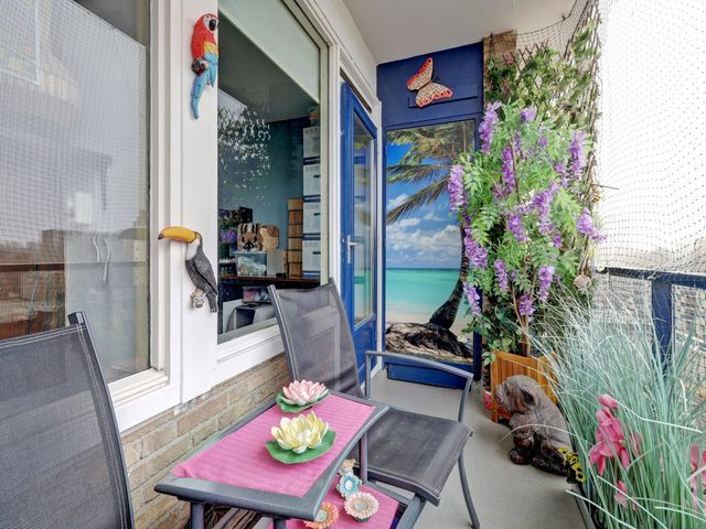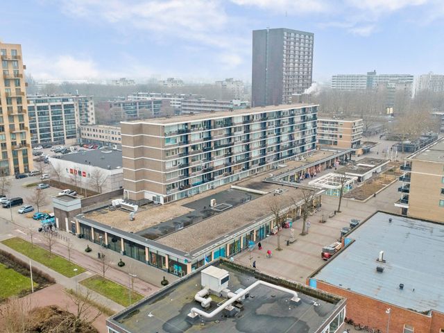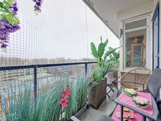 Het balkon is gelegen op het westen en biedt vaak tot in de late uren zon .Ook heeft u hier uitzicht op het winkelplein" het Lage Land" én uitzicht naar de skyline van Rotterdam.