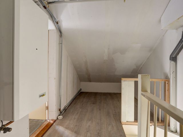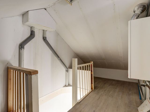 Via de overloop, met opstelplaats voor de Cv-ketel, bereikt u de zolderkamer. Deze kamer is voorzien van een dakraam (wordt nog vergroot) en biedt nog mogelijkheden om eventueel te voorzien van dakkapel(en).