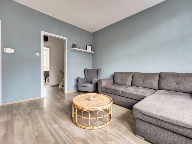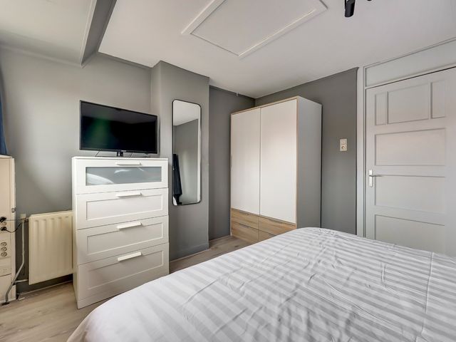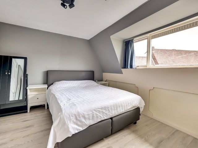 Op de tweede verdieping bevinden zich twee goede slaapkamers, waarvan één met dakkapel, en een ruime, volledig betegelde badkamer met douchecabine, wastafelmeubel en wasmachineaansluiting. Een comfortabele woning waar u u direct thuis voelt.