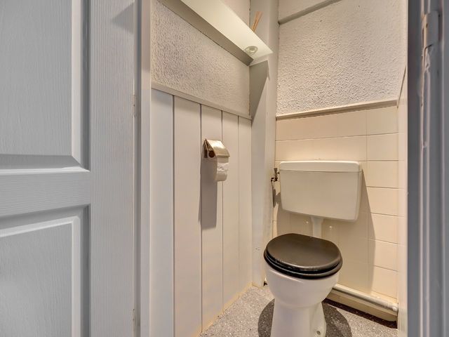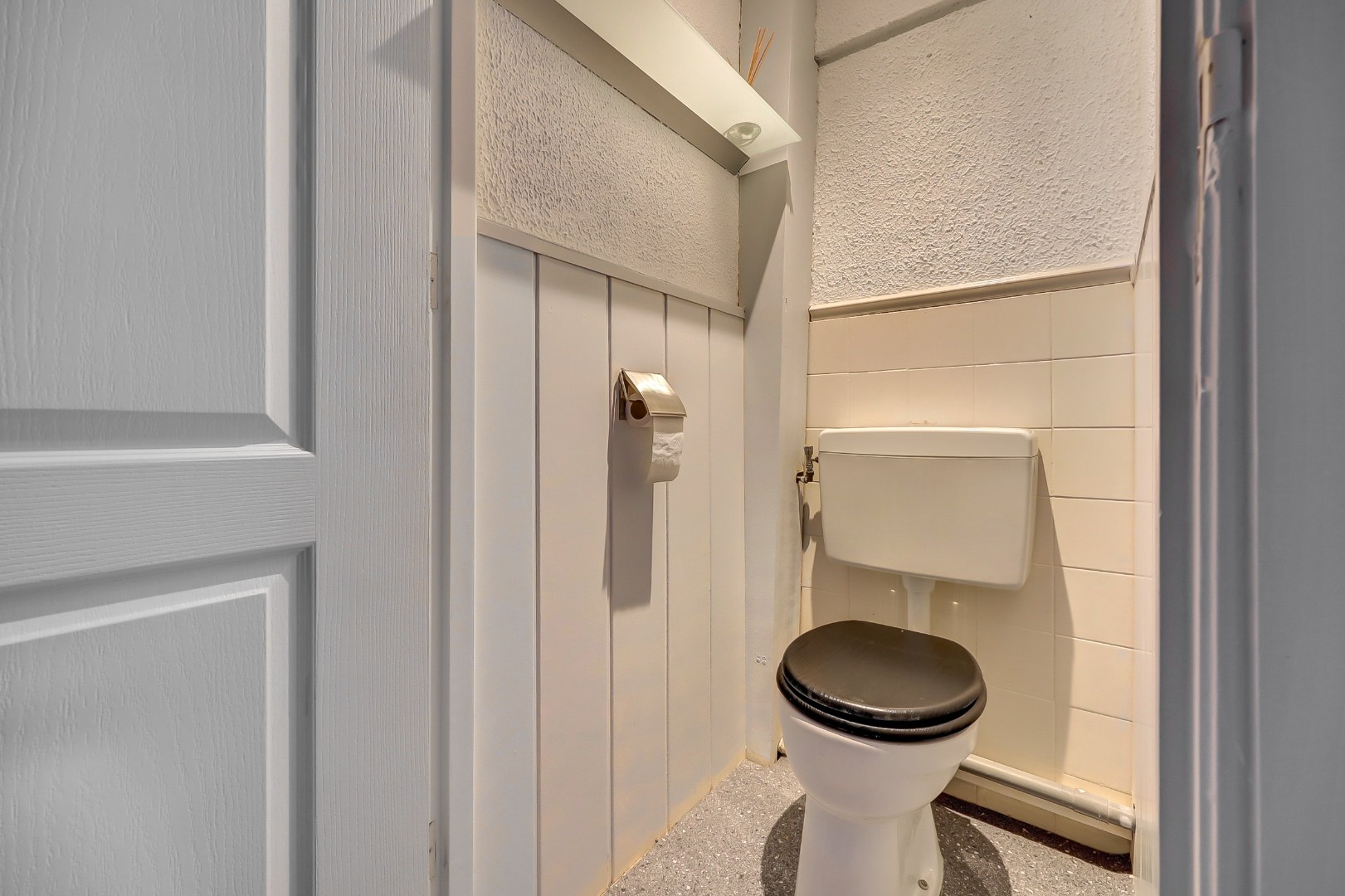 Via de overloop bereikt u alle vertrekken en de trapopgang naar de tweede verdieping. De toiletruimte is deels betegeld en netjes afgewerkt. In de vaste kast vindt u de opstelplaats voor de cv-ketel.