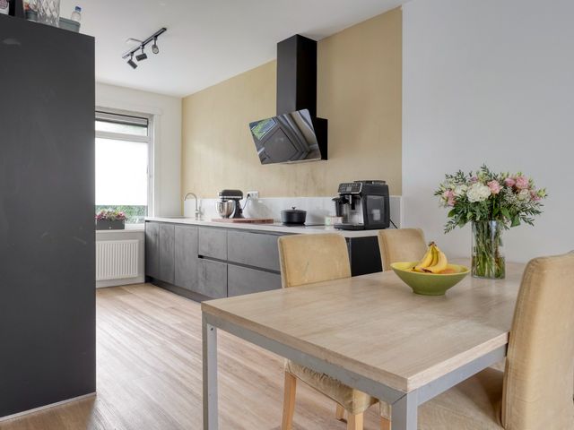 In de keuken bevindt zich ook een vaste kast met opstelplaats van de Combi-ketel (2024) en wasmachineaansluiting zijn gerealiseerd.