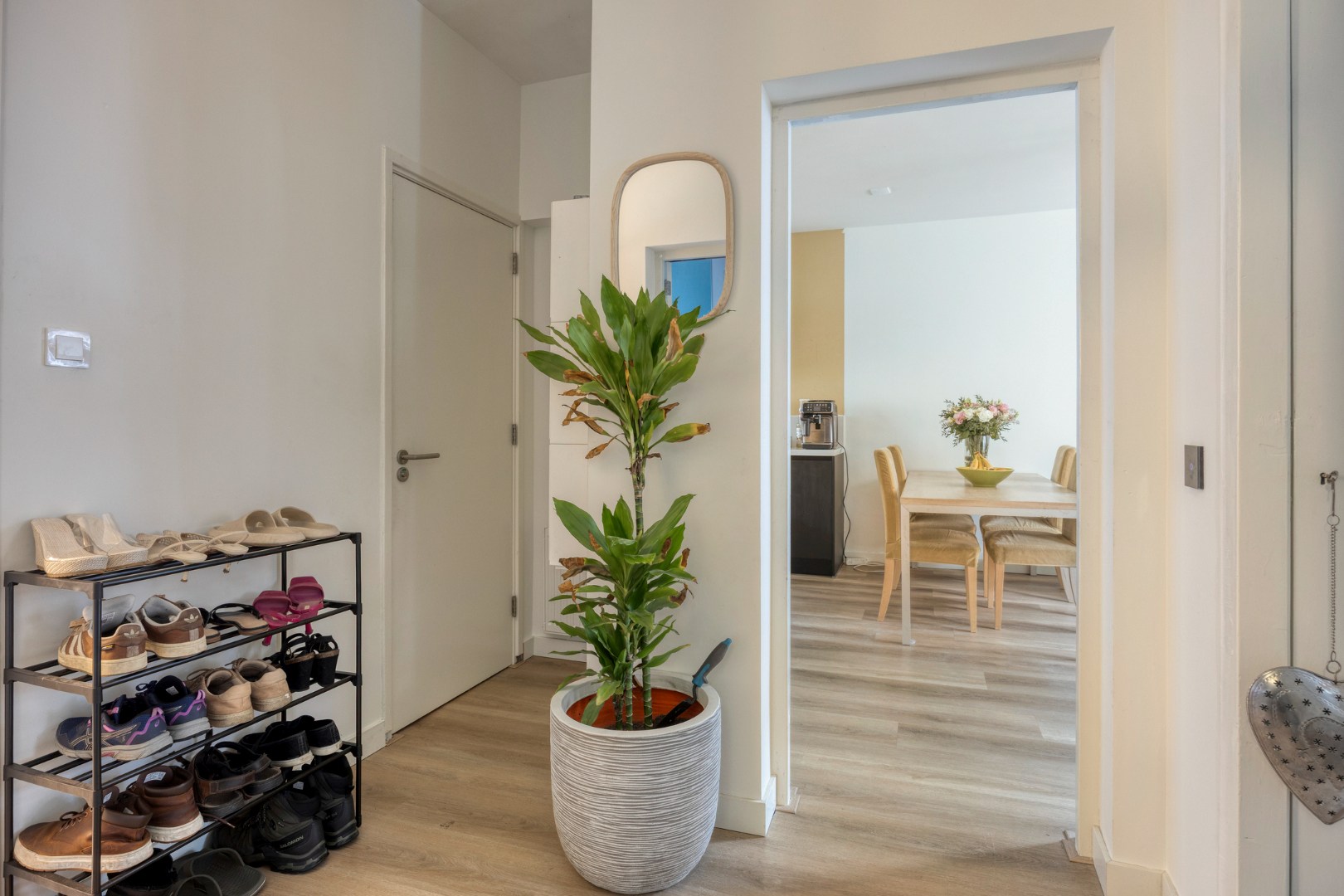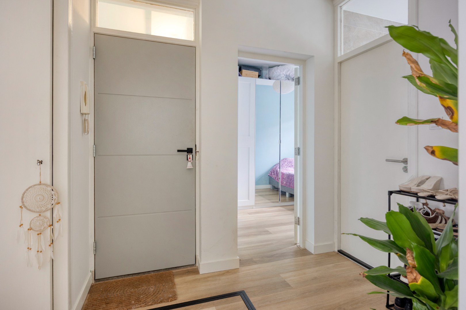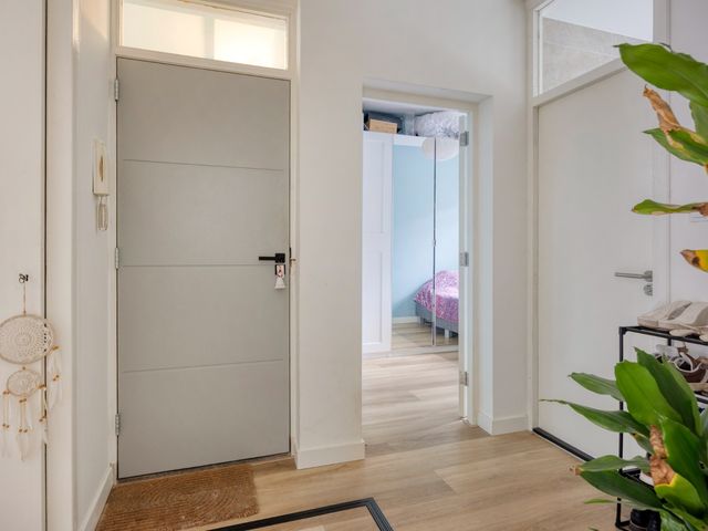 Bij binnenkomst valt meteen de praktische hal op, voorzien van een meterkast en vaste kast, die toegang geeft tot alle vertrekken.