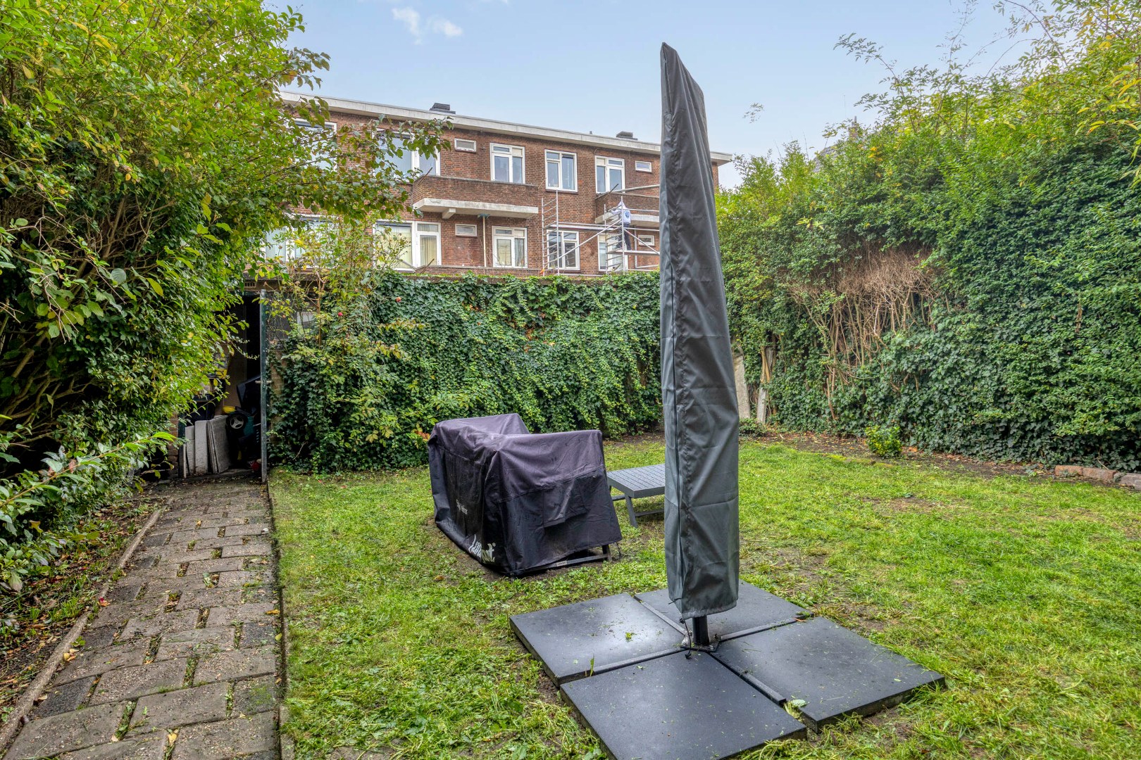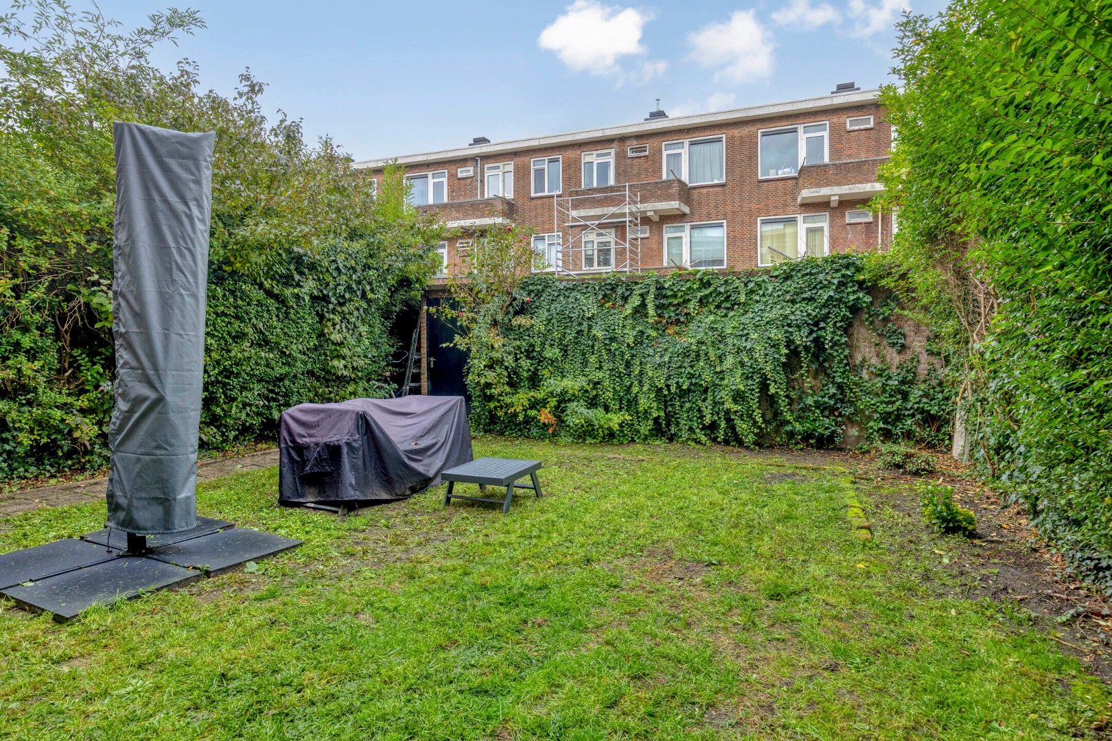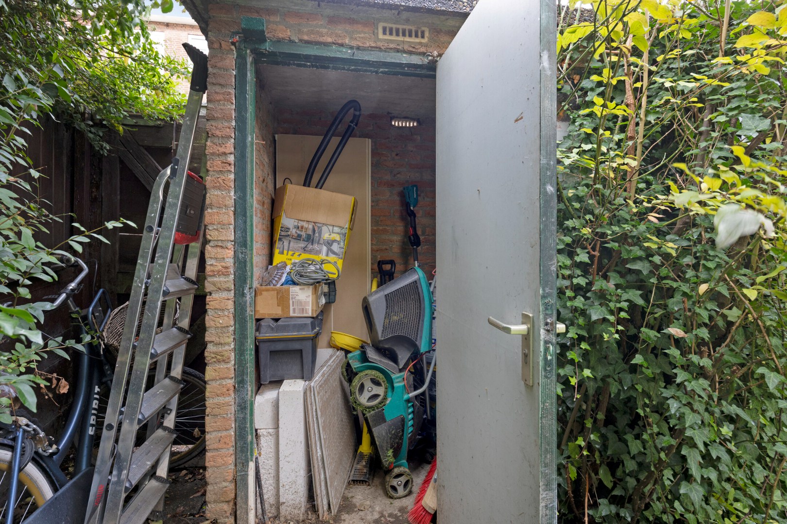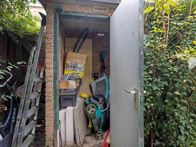 * 8 meter breede achtertuin met eigen berging.