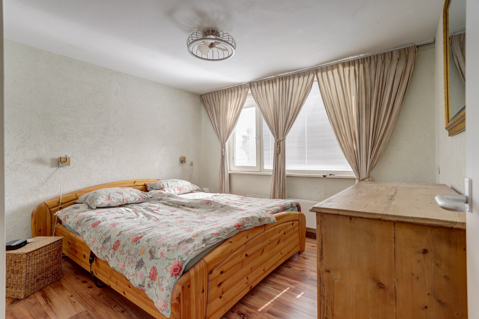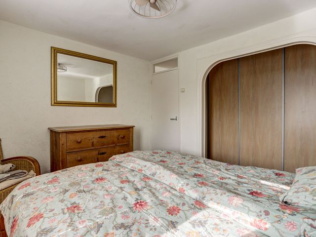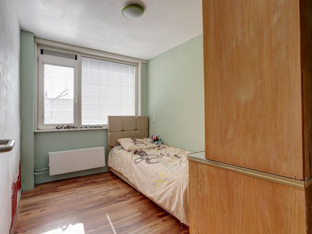 Twee slaapkamers zijn gelegen aan de achterzijde van de woning en één slaapkamer aan de voorzijde. De eerste en tweede slaapkamer beschikken over een vaste kastenwand.