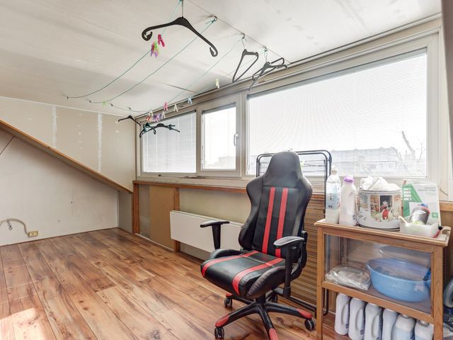 Op de overloop vindt u de opstelplaats voor de wasmachine en droger. Daarnaast bevindt zich hier de vierde slaapkamer met kunststof dakkapel. Aan de achterzijde is de hobbykamer/ruimte ook van kunststof dakkapel voorzien.