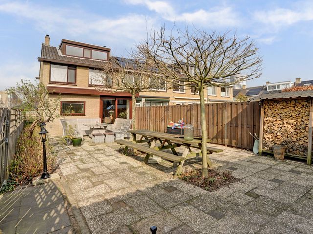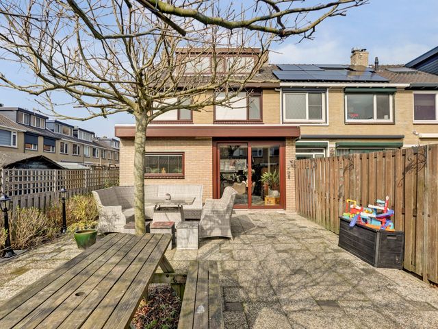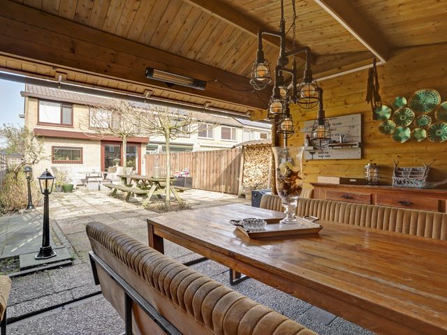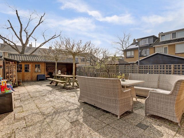De op het zuiden gelegen achtertuin biedt u niet alleen veel daglicht maar ook een heerlijk plek om van de zon te genieten. De tuin beschikt over een riante berging met overkapping en een zijentree.