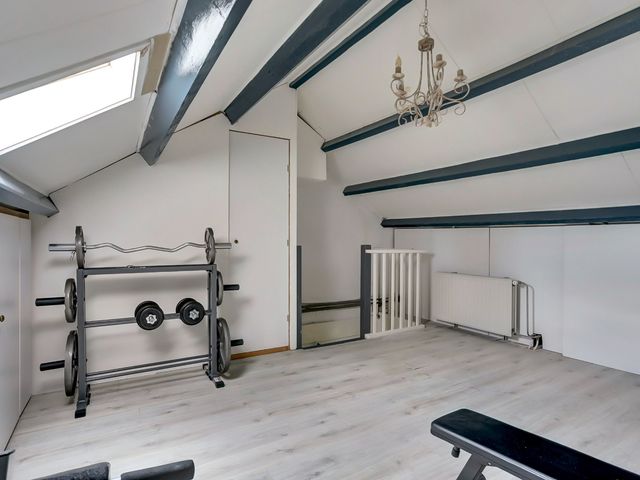 Op de bovenste verdieping bevindt zich de vierde slaapkamer met dakraam en veel handige knieschotten voor opbergruimte, perfect als tienerkamer, werkkamer of hobbyruimte.